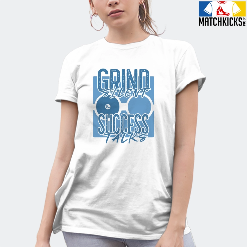 T-Shirt – Nike Dunk Low University Blue – Sneaker-Matching T-Shirt (Grind Silent Success Talks) is a high quality sneaker-matching T-Shirt designed to match your Nike Dunk Low University Blue sneakers. – This Tee is designed with the exact colors to match with a premium look and feel. We only use the best materials and inks to produce our merchandise. All sizes are true to size.