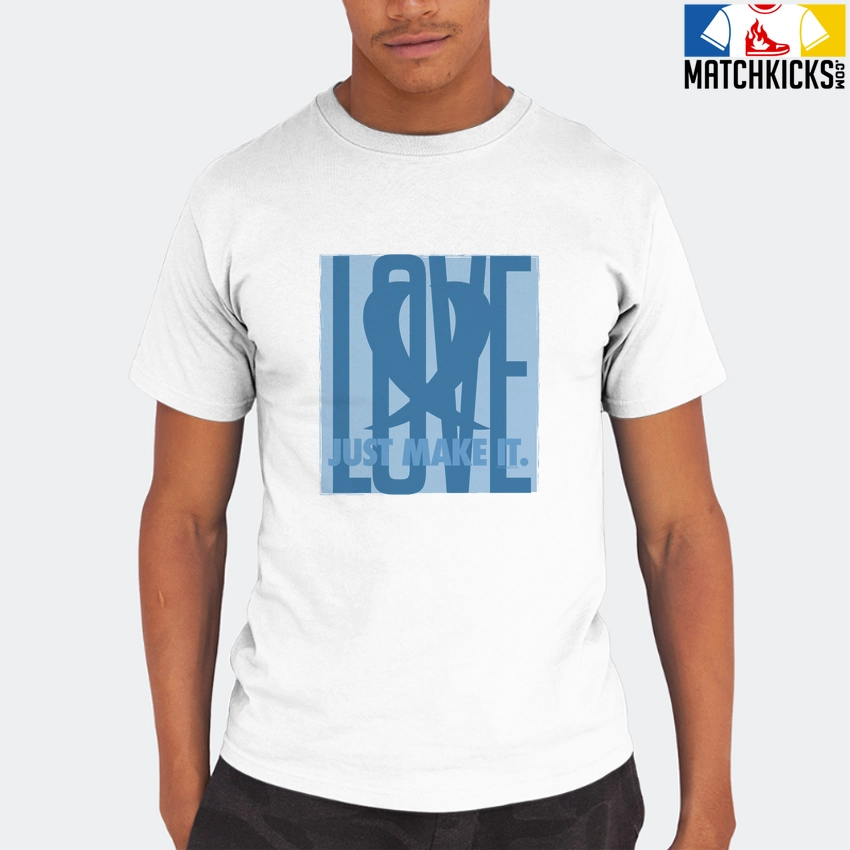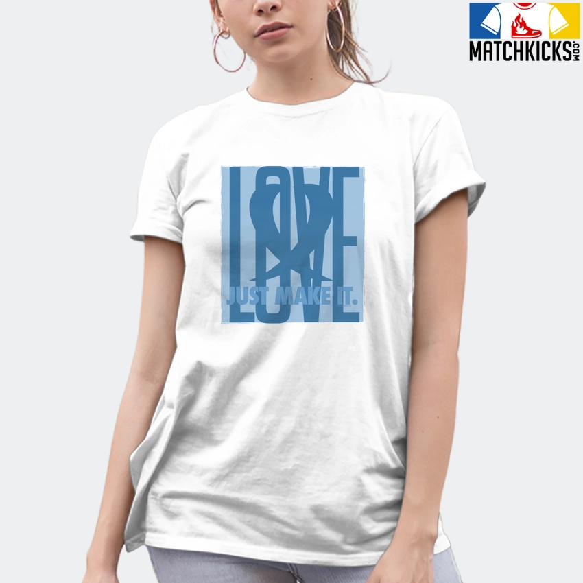 T-Shirt – Nike Dunk Low University Blue – Sneaker-Matching T-Shirt (LOVE Just Make It) is a high quality sneaker-matching T-Shirt designed to match your Nike Dunk Low University Blue sneakers. – This Tee is designed with the exact colors to match with a premium look and feel. We only use the best materials and inks to produce our merchandise. All sizes are true to size.