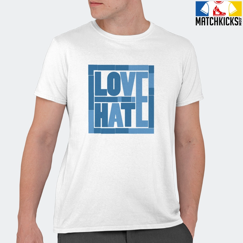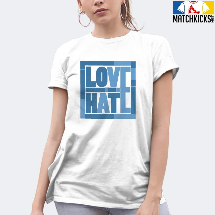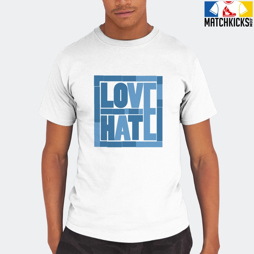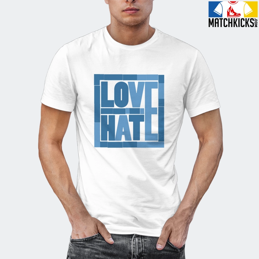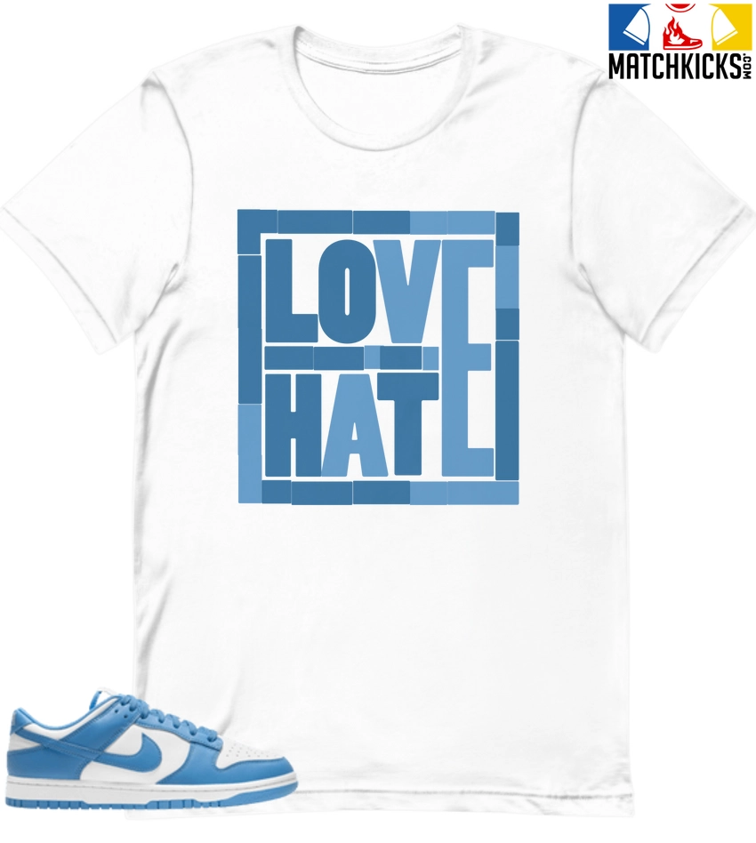 T-Shirt – Nike Dunk Low University Blue – Sneaker-Matching T-Shirt (Love Over Hate) is a high quality sneaker-matching T-Shirt designed to match your Nike Dunk Low University Blue sneakers. – This Tee is designed with the exact colors to match with a premium look and feel. We only use the best materials and inks to produce our merchandise. All sizes are true to size.