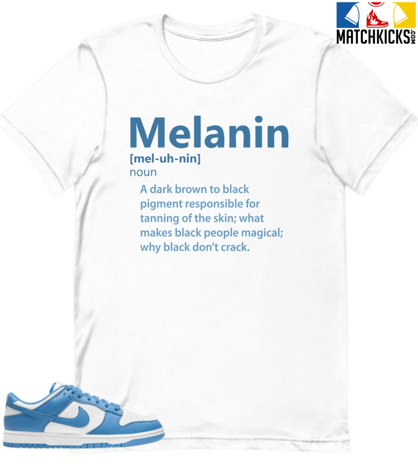 T-Shirt – Nike Dunk Low University Blue – Sneaker-Matching T-Shirt (Melanin Noun) is a high quality sneaker-matching T-Shirt designed to match your Nike Dunk Low University Blue sneakers. – This Tee is designed with the exact colors to match with a premium look and feel. We only use the best materials and inks to produce our merchandise. All sizes are true to size.