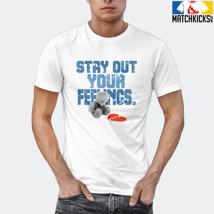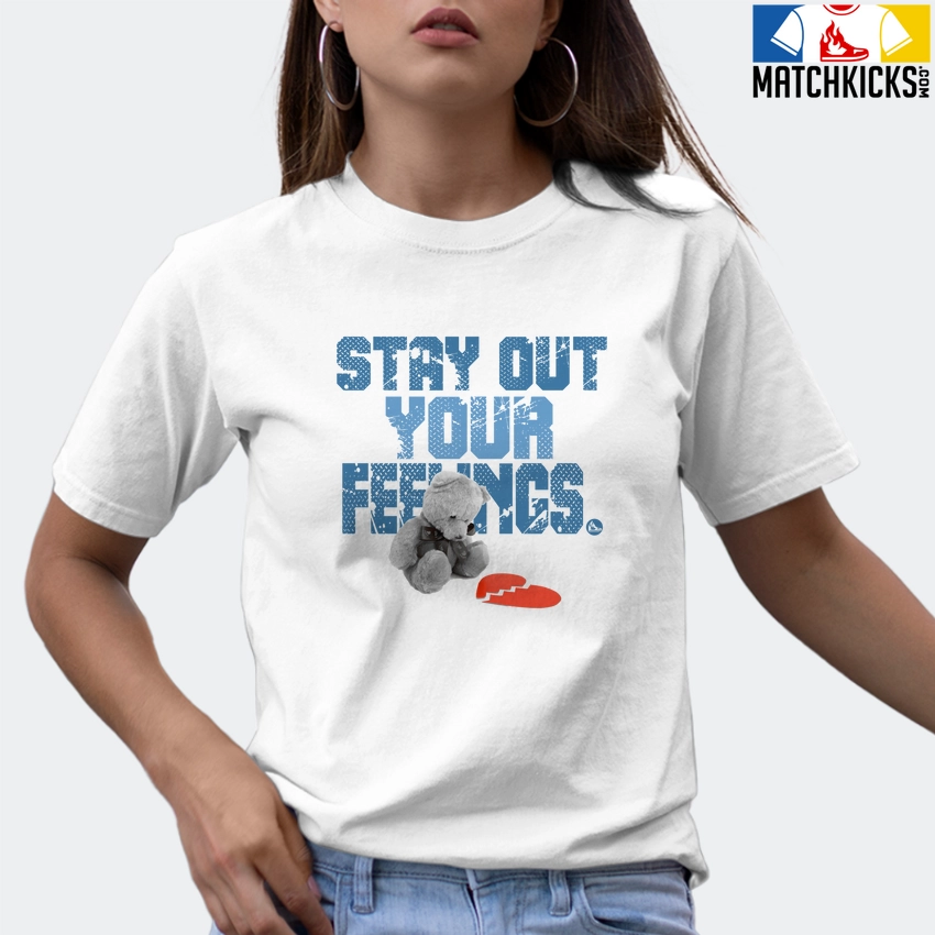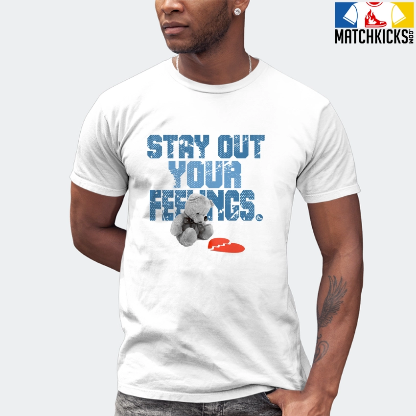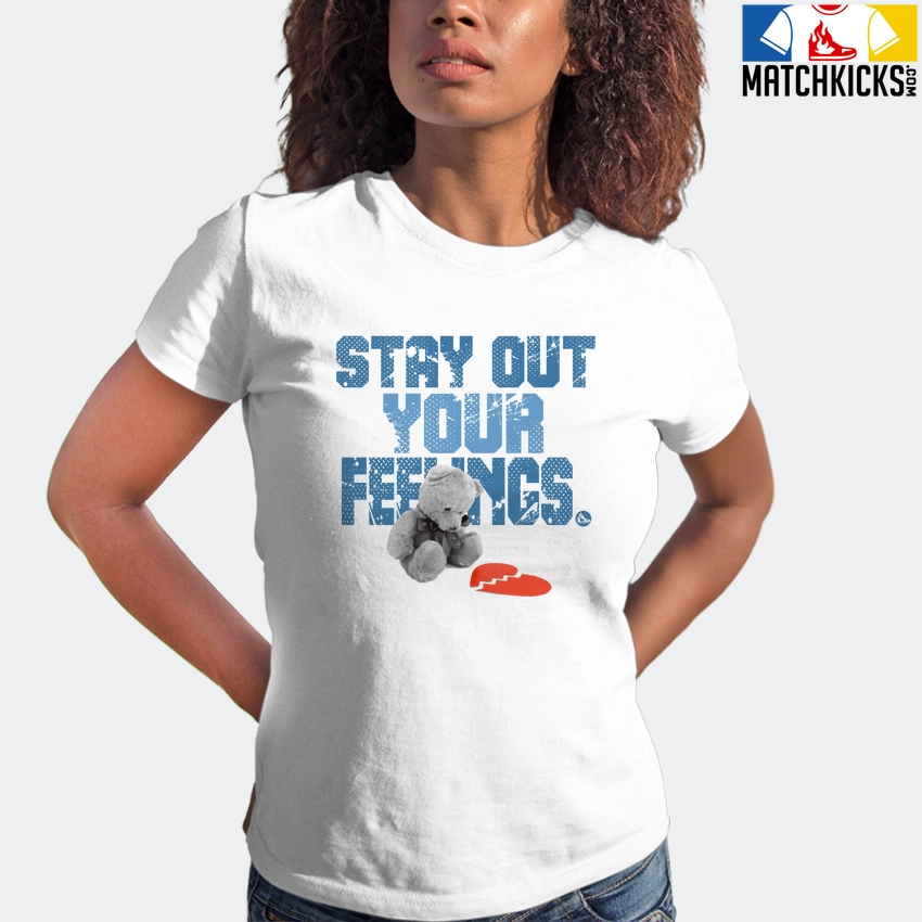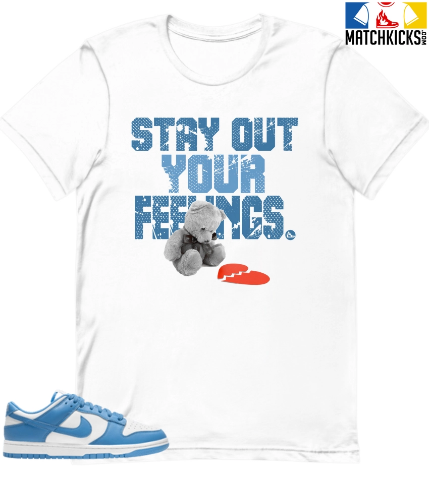 T-Shirt – Nike Dunk Low University Blue – Sneaker-Matching T-Shirt (Stay Out Your Feelings) is a high quality sneaker-matching T-Shirt designed to match your Nike Dunk Low University Blue sneakers. – This Tee is designed with the exact colors to match with a premium look and feel. We only use the best materials and inks to produce our merchandise. All sizes are true to size.