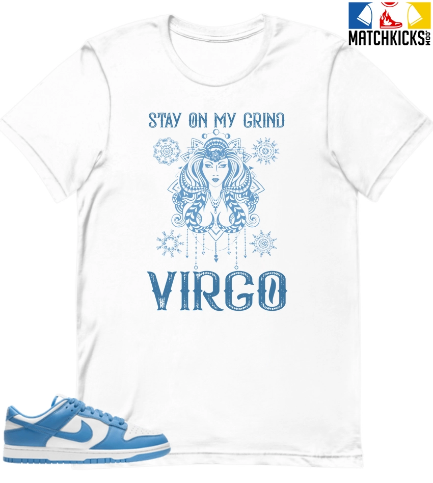 T-Shirt – Nike Dunk Low University Blue – Sneaker-Matching T-Shirt (Virgo Stay on My Grind) is a high quality sneaker-matching T-Shirt designed to match your Nike Dunk Low University Blue sneakers. – This Tee is designed with the exact colors to match with a premium look and feel. We only use the best materials and inks to produce our merchandise. All sizes are true to size.