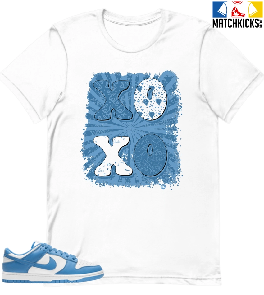 T-Shirt – Nike Dunk Low University Blue – Sneaker-Matching T-Shirt (XOXO) is a high quality sneaker-matching T-Shirt designed to match your Nike Dunk Low University Blue sneakers. – This Tee is designed with the exact colors to match with a premium look and feel. We only use the best materials and inks to produce our merchandise. All sizes are true to size.