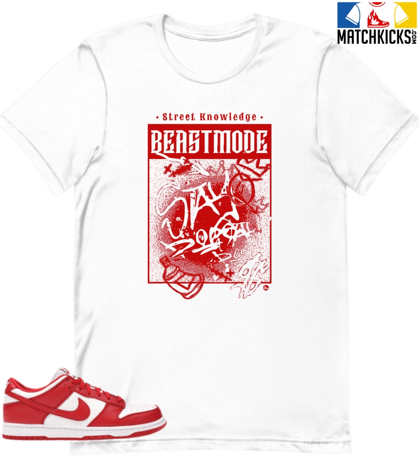 T-Shirt – Nike Dunk Low University Red (2020) – Sneaker-Matching T-Shirt (BEAST MODE) is a high quality sneaker-matching T-Shirt designed to match your Nike Dunk Low University Red (2020) sneakers. – This Tee is designed with the exact colors to match with a premium look and feel. We only use the best materials and inks to produce our merchandise. All sizes are true to size.