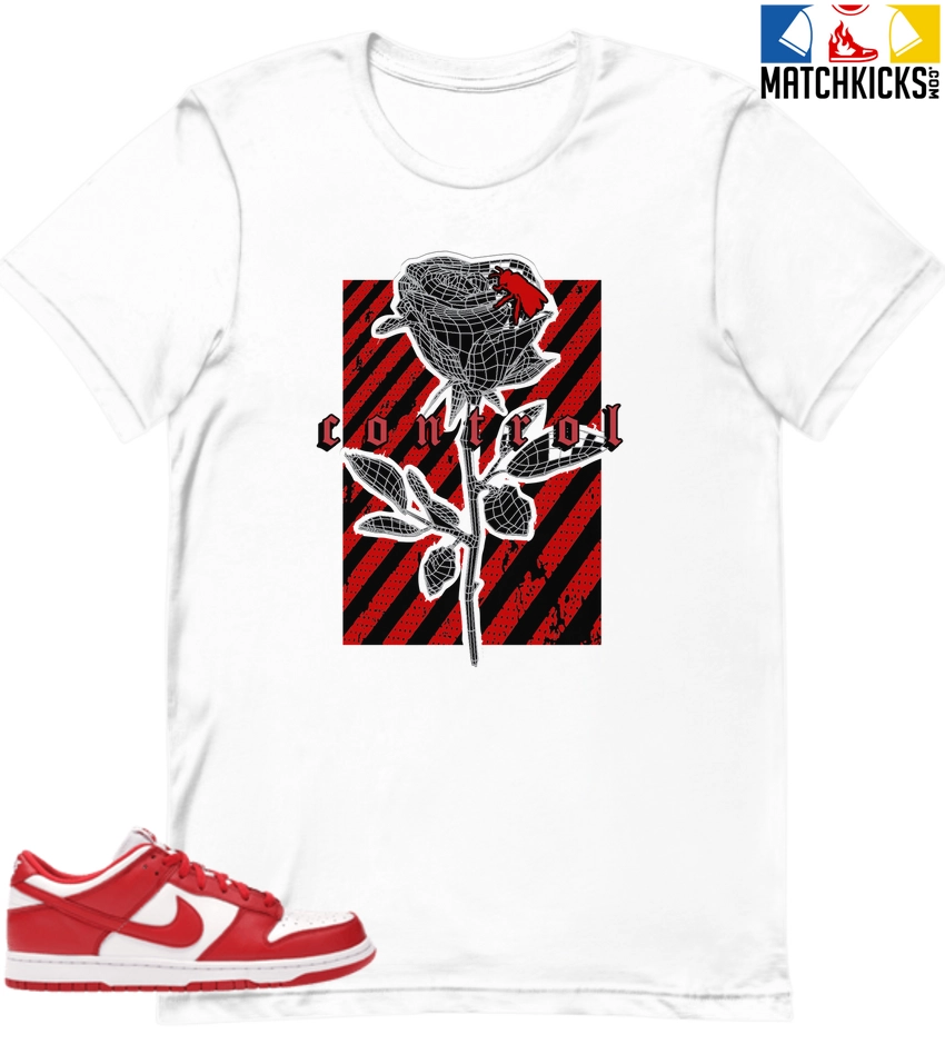 T-Shirt – Nike Dunk Low University Red (2020) – Sneaker-Matching T-Shirt (Control) is a high quality sneaker-matching T-Shirt designed to match your Nike Dunk Low University Red (2020) sneakers. – This Tee is designed with the exact colors to match with a premium look and feel. We only use the best materials and inks to produce our merchandise. All sizes are true to size.