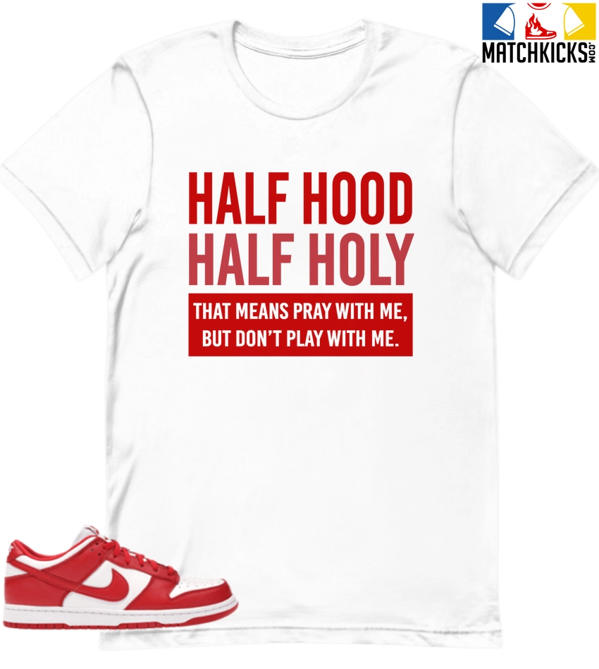 T-Shirt – Nike Dunk Low University Red (2020) – Sneaker-Matching T-Shirt (Half Hood Half Holy)