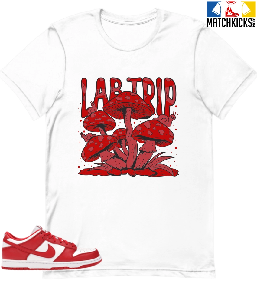 T-Shirt – Nike Dunk Low University Red (2020) – Sneaker-Matching T-Shirt (Lab trip) is a high quality sneaker-matching T-Shirt designed to match your Nike Dunk Low University Red (2020) sneakers. – This Tee is designed with the exact colors to match with a premium look and feel. We only use the best materials and inks to produce our merchandise. All sizes are true to size.