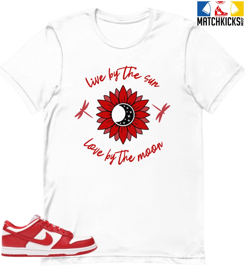 T-Shirt – Nike Dunk Low University Red (2020) – Sneaker-Matching T-Shirt (Live by the Sun Love by the Moon) is a high quality sneaker-matching T-Shirt designed to match your Nike Dunk Low University Red (2020) sneakers. – This Tee is designed with the exact colors to match with a premium look and feel. We only use the best materials and inks to produce our merchandise. All sizes are true to size.