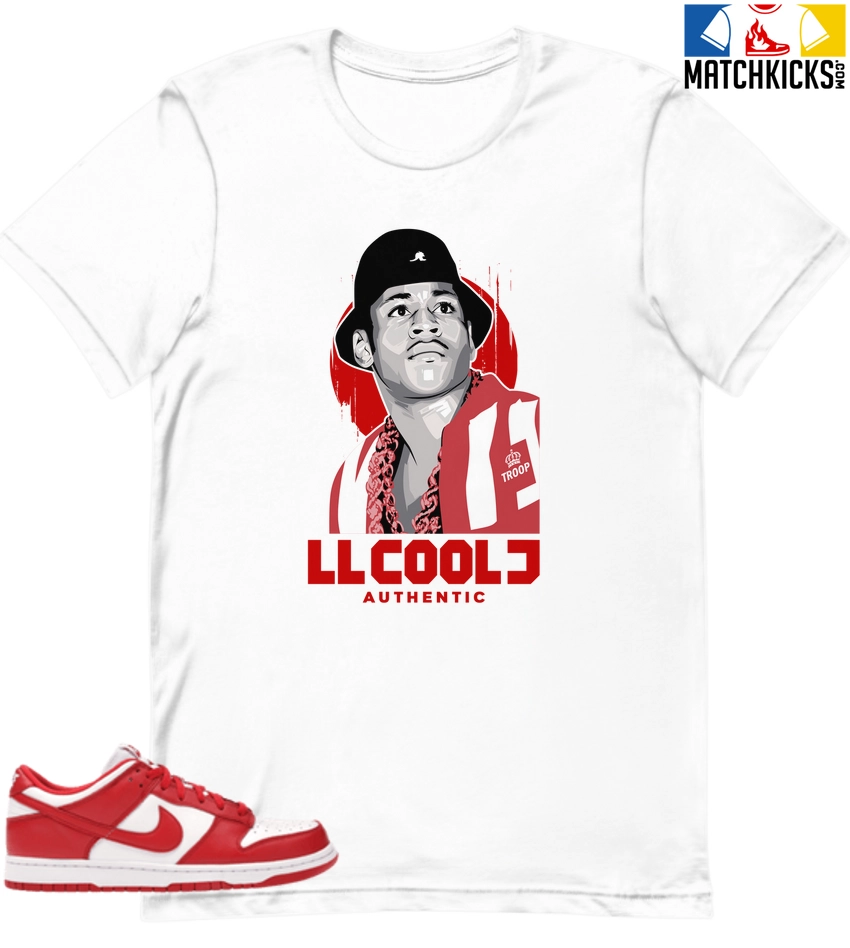 T-Shirt – Nike Dunk Low University Red (2020) – Sneaker-Matching T-Shirt (LL COOL J) is a high quality sneaker-matching T-Shirt designed to match your Nike Dunk Low University Red (2020) sneakers. – This Tee is designed with the exact colors to match with a premium look and feel. We only use the best materials and inks to produce our merchandise. All sizes are true to size.