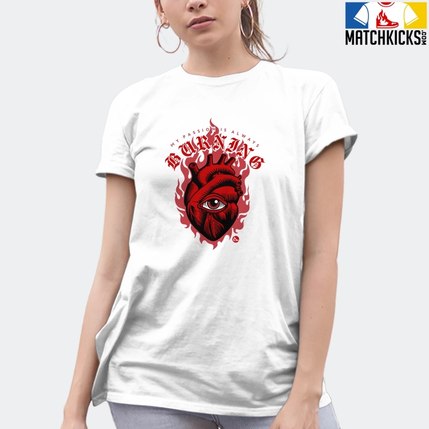 T-Shirt – Nike Dunk Low University Red (2020) – Sneaker-Matching T-Shirt (My Passion is Always Burning) is a high quality sneaker-matching T-Shirt designed to match your Nike Dunk Low University Red (2020) sneakers. – This Tee is designed with the exact colors to match with a premium look and feel. We only use the best materials and inks to produce our merchandise. All sizes are true to size.