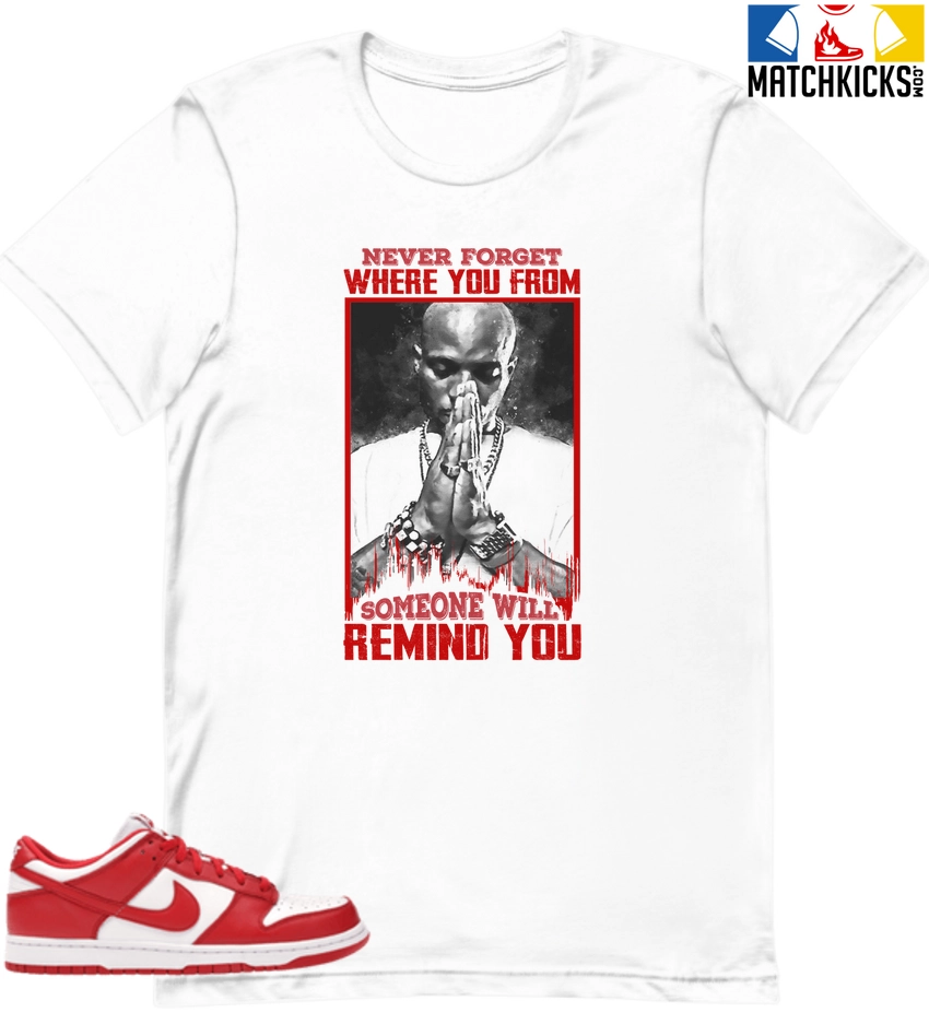 T-Shirt – Nike Dunk Low University Red (2020) – Sneaker-Matching T-Shirt (Never Forget Where You From)