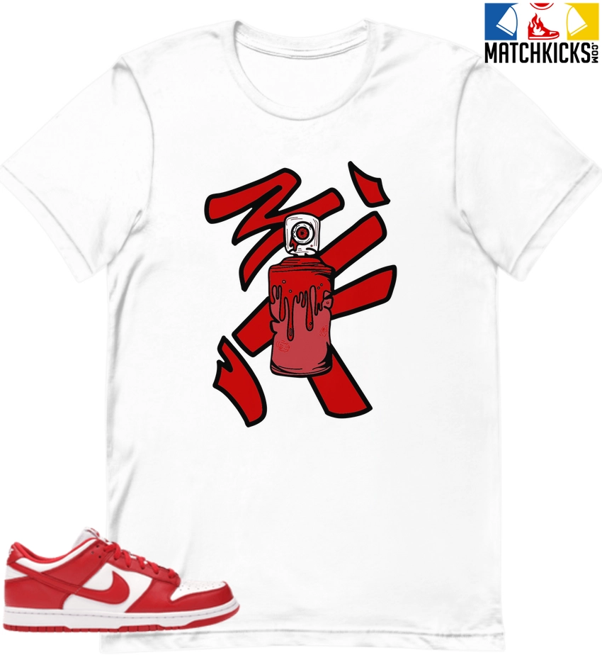 T-Shirt – Nike Dunk Low University Red (2020) – Sneaker-Matching T-Shirt (Spray Can) is a high quality sneaker-matching T-Shirt designed to match your Nike Dunk Low University Red (2020) sneakers. – This Tee is designed with the exact colors to match with a premium look and feel. We only use the best materials and inks to produce our merchandise. All sizes are true to size.