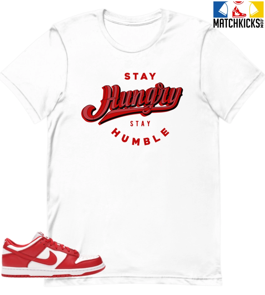 T-Shirt – Nike Dunk Low University Red (2020) – Sneaker-Matching T-Shirt (Stay Hungry Stay Humble)