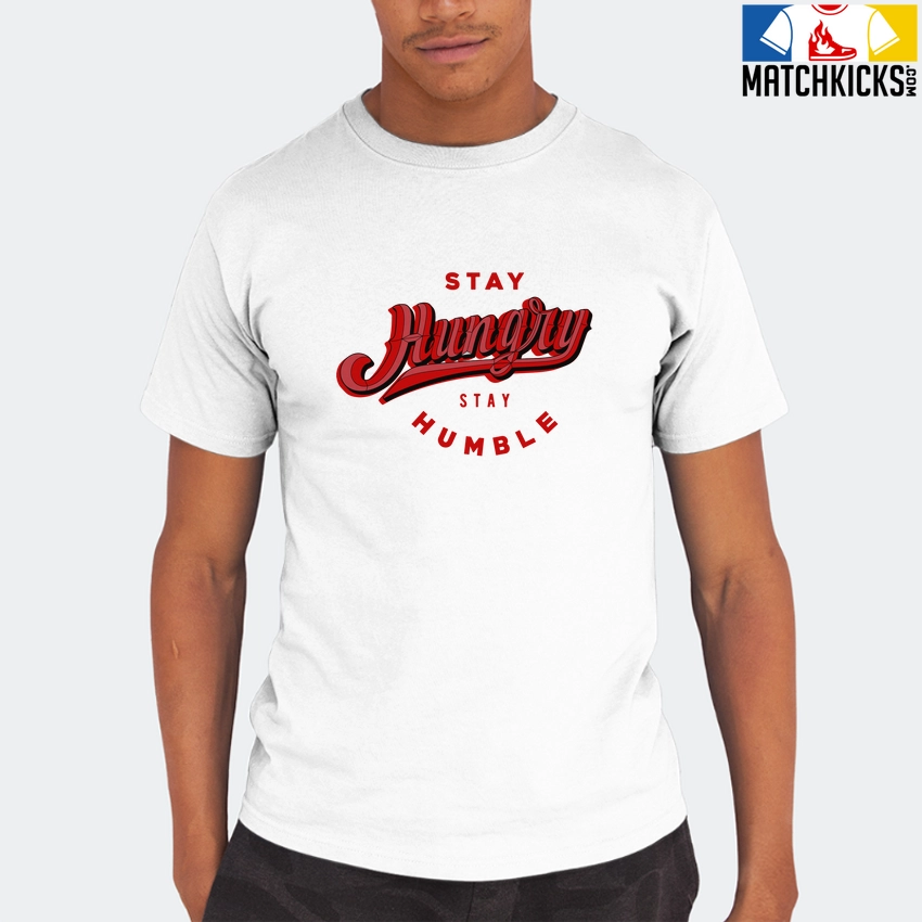 T-Shirt – Nike Dunk Low University Red (2020) – Sneaker-Matching T-Shirt (Stay Hungry Stay Humble) is a high quality sneaker-matching T-Shirt designed to match your Nike Dunk Low University Red (2020) sneakers. – This Tee is designed with the exact colors to match with a premium look and feel. We only use the best materials and inks to produce our merchandise. All sizes are true to size.