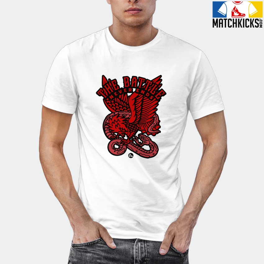 T-Shirt – Nike Dunk Low University Red (2020) – Sneaker-Matching T-Shirt (The Battle) is a high quality sneaker-matching T-Shirt designed to match your Nike Dunk Low University Red (2020) sneakers. – This Tee is designed with the exact colors to match with a premium look and feel. We only use the best materials and inks to produce our merchandise. All sizes are true to size.