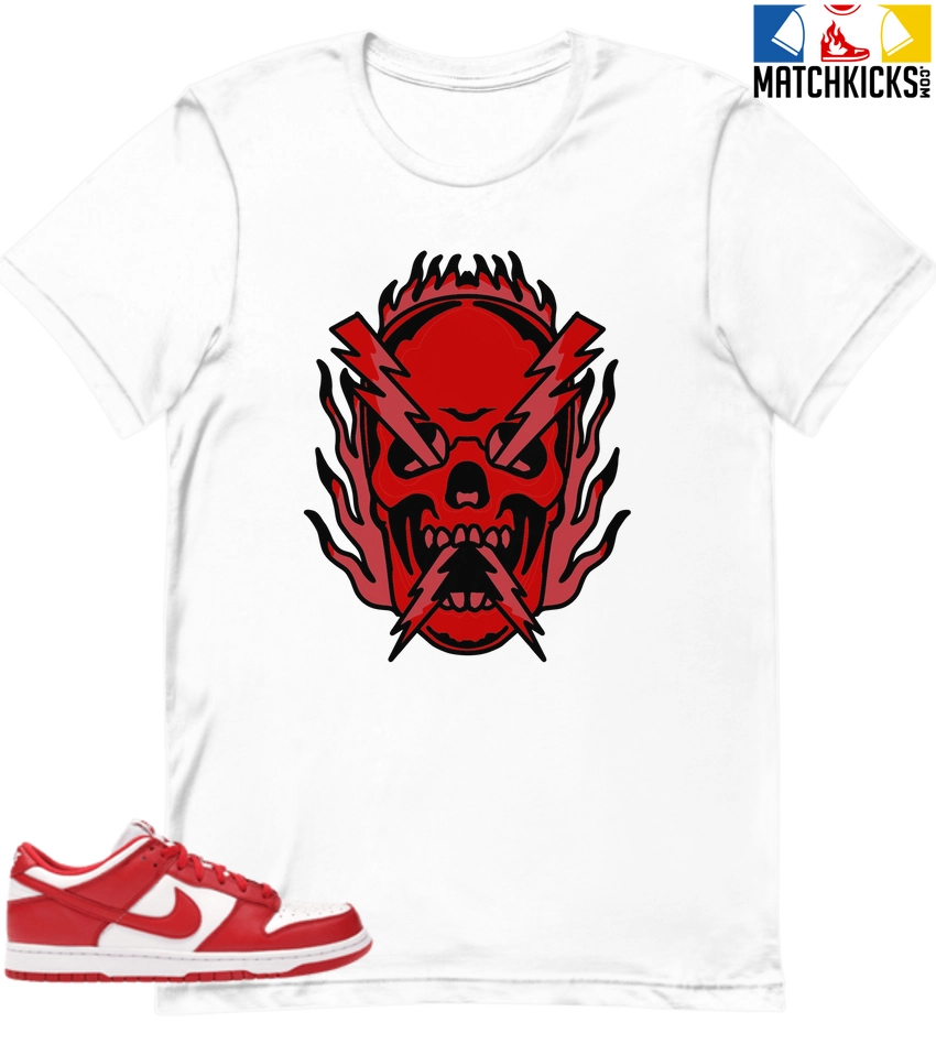 T-Shirt – Nike Dunk Low University Red (2020) – Sneaker-Matching T-Shirt (THUNDER SKULL) is a high quality sneaker-matching T-Shirt designed to match your Nike Dunk Low University Red (2020) sneakers. – This Tee is designed with the exact colors to match with a premium look and feel. We only use the best materials and inks to produce our merchandise. All sizes are true to size.
