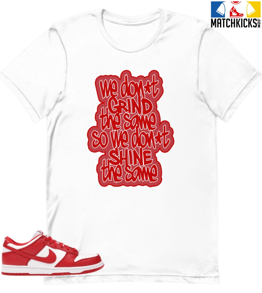 T-Shirt – Nike Dunk Low University Red (2020) – Sneaker-Matching T-Shirt (We Dont Grind the Same) is a high quality sneaker-matching T-Shirt designed to match your Nike Dunk Low University Red (2020) sneakers. – This Tee is designed with the exact colors to match with a premium look and feel. We only use the best materials and inks to produce our merchandise. All sizes are true to size.