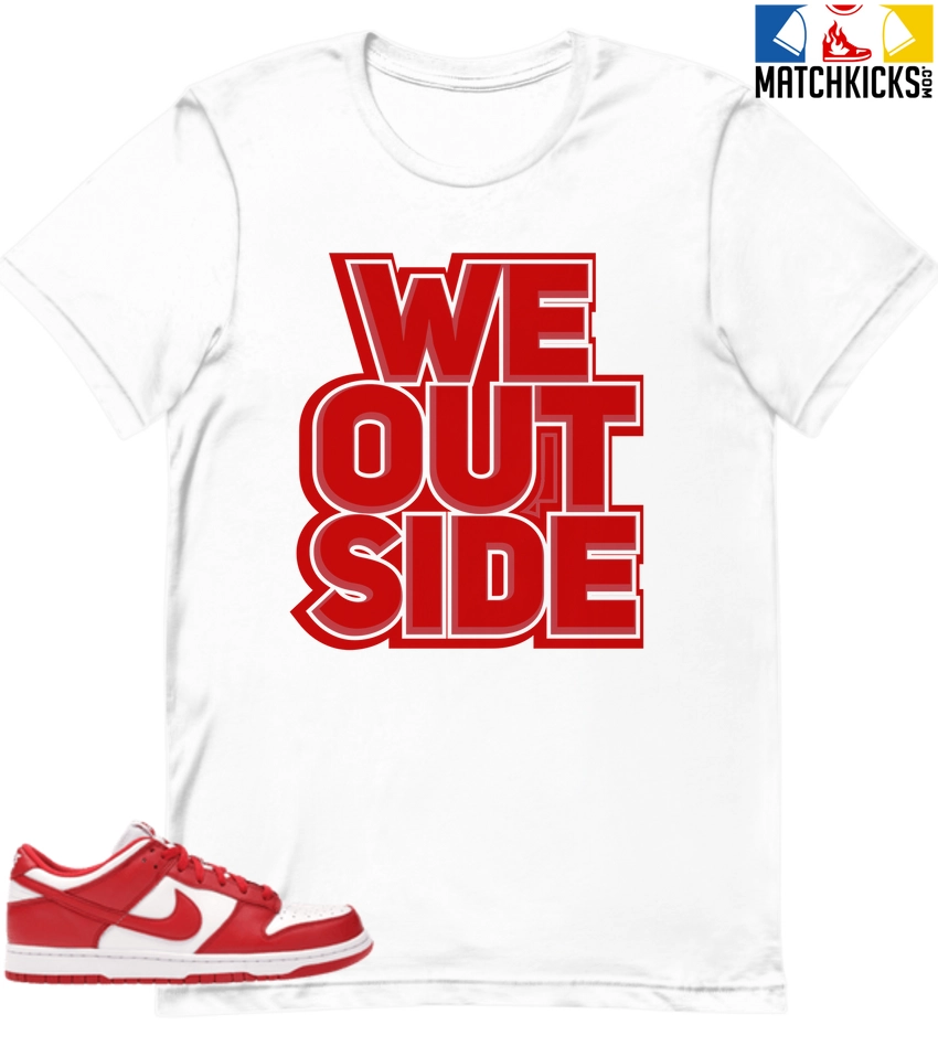 T-Shirt – Nike Dunk Low University Red (2020) – Sneaker-Matching T-Shirt (We Outside) is a high quality sneaker-matching T-Shirt designed to match your Nike Dunk Low University Red (2020) sneakers. – This Tee is designed with the exact colors to match with a premium look and feel. We only use the best materials and inks to produce our merchandise. All sizes are true to size.